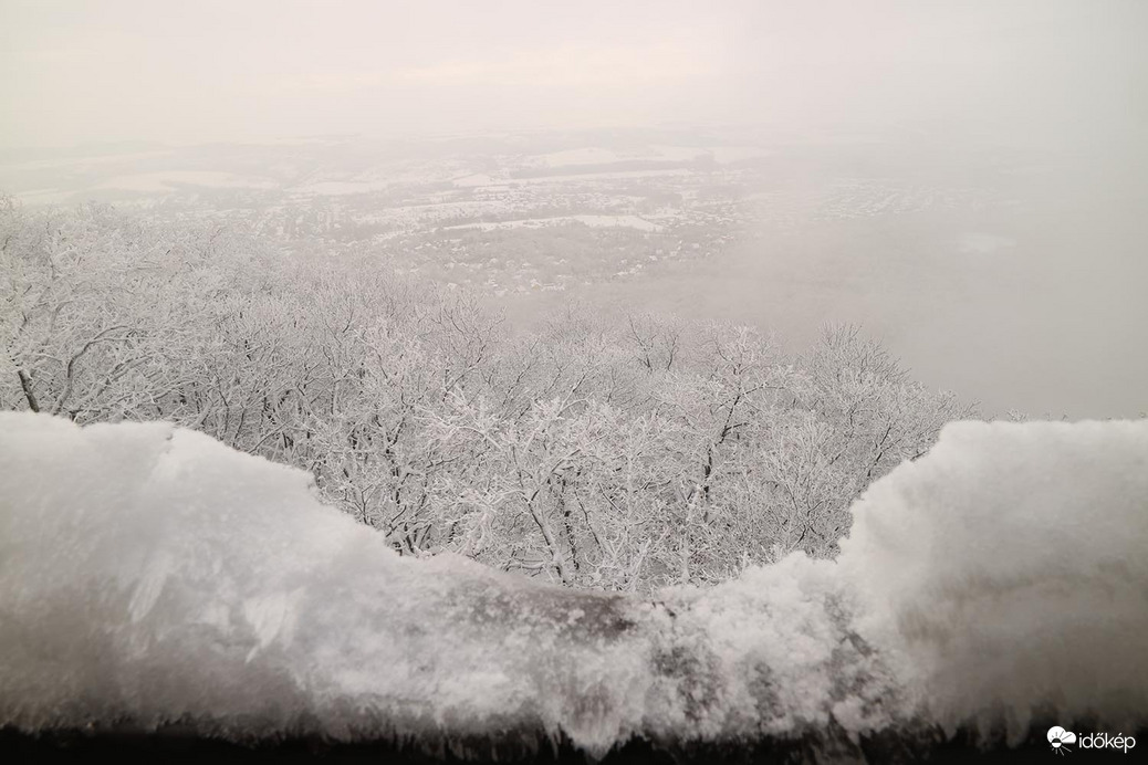 Ködös kilátás a hegytetőről.
