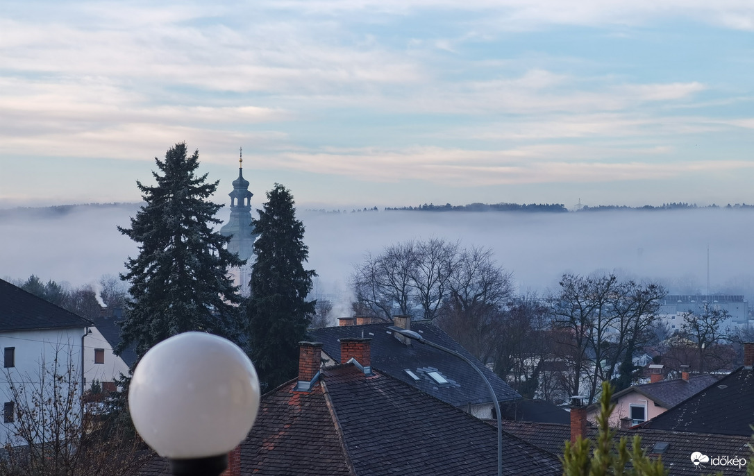 Vonuló köd a város felett
