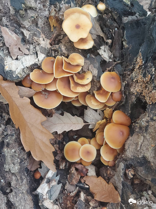 Ezt tudod,milyen gomba?Nekem így felülnézetből két tippem van:fenyves sisakgomba és valamelyik lánggomba.(Habár a picikét látszó lemezei szerint téli fülőke is lehet.)