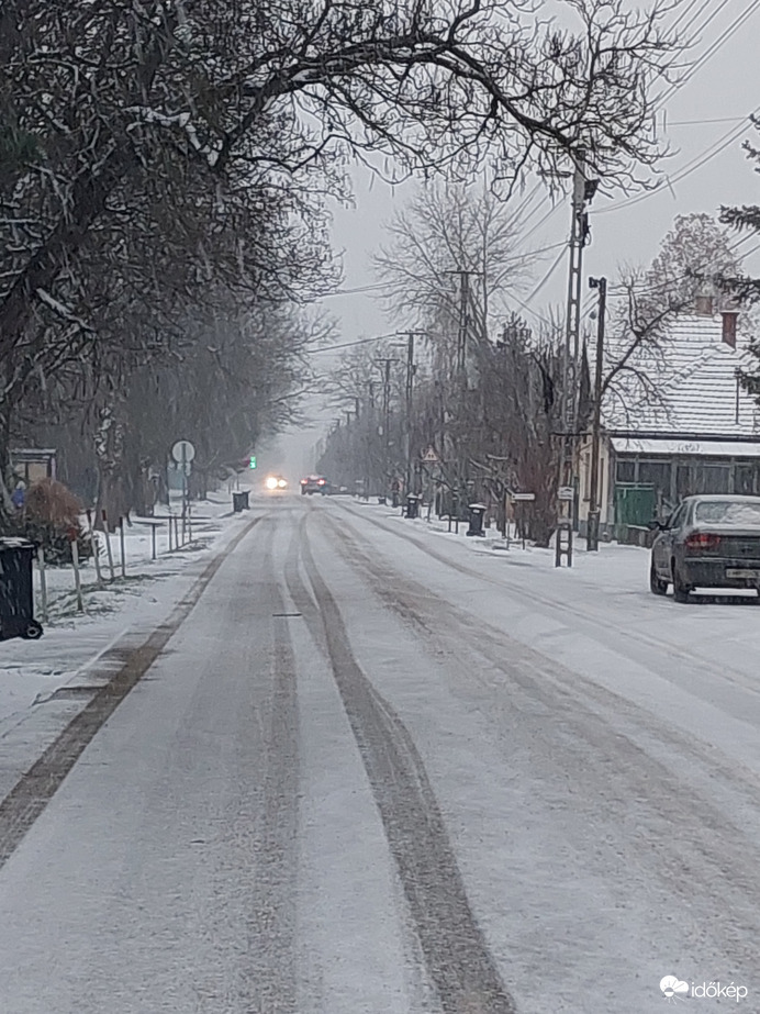 Fő úton látva sűrű havazik