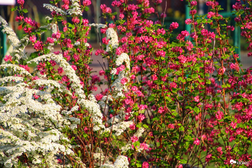 Hamvas gyöngyvessző és vérvörös ribiszke együttese